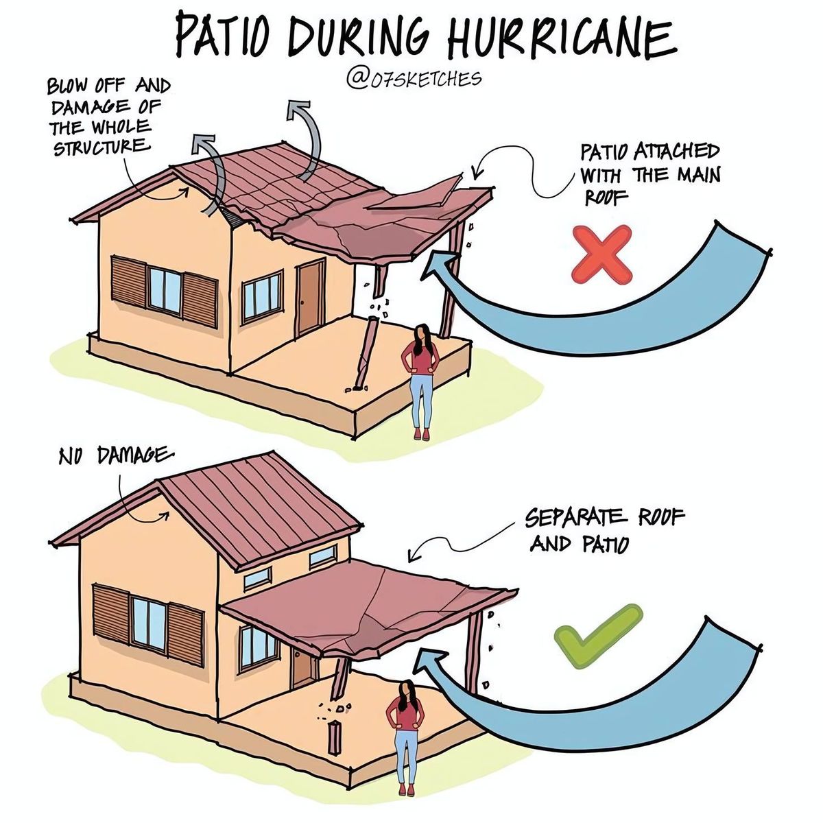 “This diagram perfectly illustrates one of the most important principles of disaster-resilient design,” says Dr. Marcus Thorne, a (fictional) structural engineer and mitigation consultant. “You always want the weakest link in a chain to be the least important part. Tying a large, vulnerable appendage like a patio roof directly to your primary roof structure is a classic mistake. It ensures that when the weak link fails, it takes the whole system down with it.”