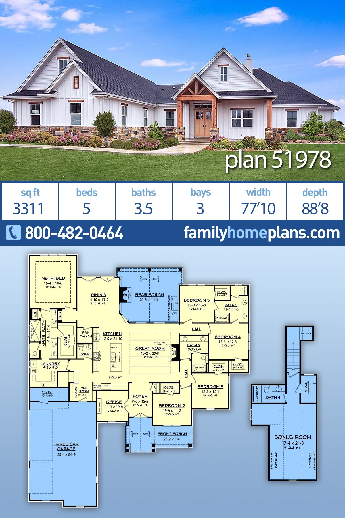 Survey & Stakeout: Use the plan’s 77′-10″ × 88′-8″ dimensions to mark property corners and building setbacks.