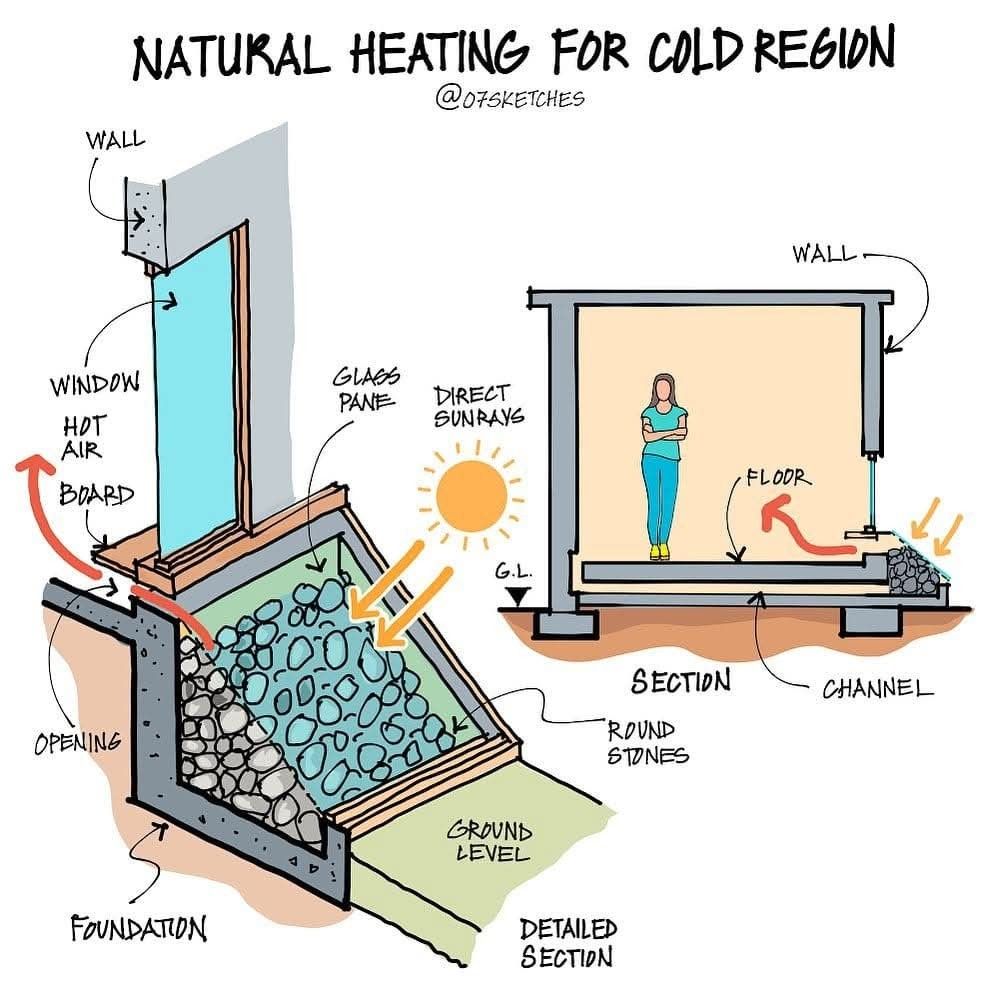 Finally, use relevant hashtags/keywords like #PassiveSolar, #DIYHeating, #ColdClimateHack, #ThermalMass, #SustainableHome, but keep them in the caption flow, not as a separate block, to keep the narrative tone.