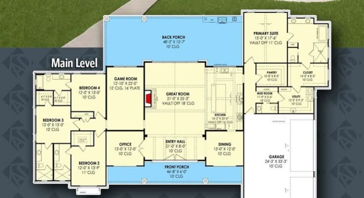 Wall Framing: Frame 2×6 exterior walls—define office, dining, great room, game room, and four guest bedrooms.