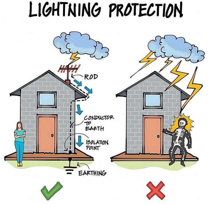 A professional system also involves more than what is shown in the simple drawing. It typically includes a network of multiple air terminals connected by a loop of conductors, and “bonding,” which connects all of the home’s metallic systems (water pipes, gas lines) to the grounding system to prevent dangerous side-flashes. Due to its complexity, a lightning protection system should always be installed by a certified professional.