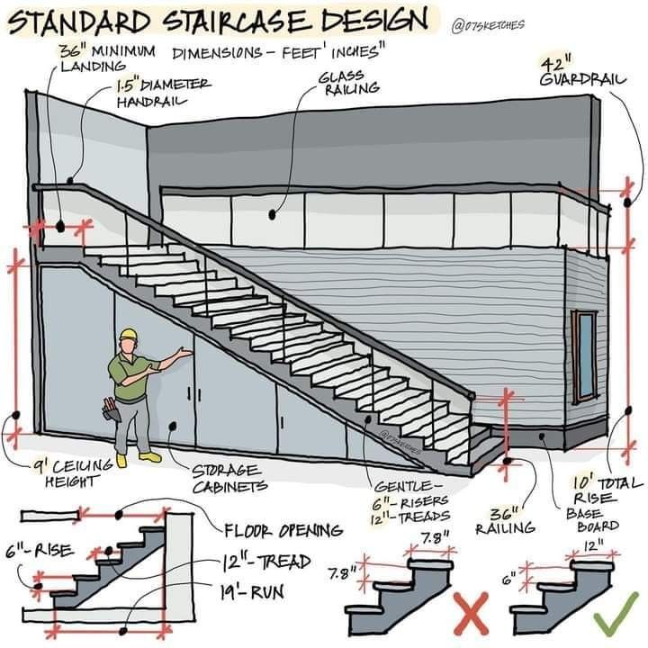 ✨ In short: A good staircase = 6” rise + 12” tread, safe railings, and thoughtful design.