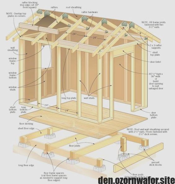 For anyone looking to understand how a house is built, an “exploded view” diagram like this one is an incredible tool. It elegantly separates a shed into its core components—foundation, floor, walls, and roof—making the complex process of construction seem logical and straightforward. It’s easy to see why such images are popular among DIYers planning a backyard project.